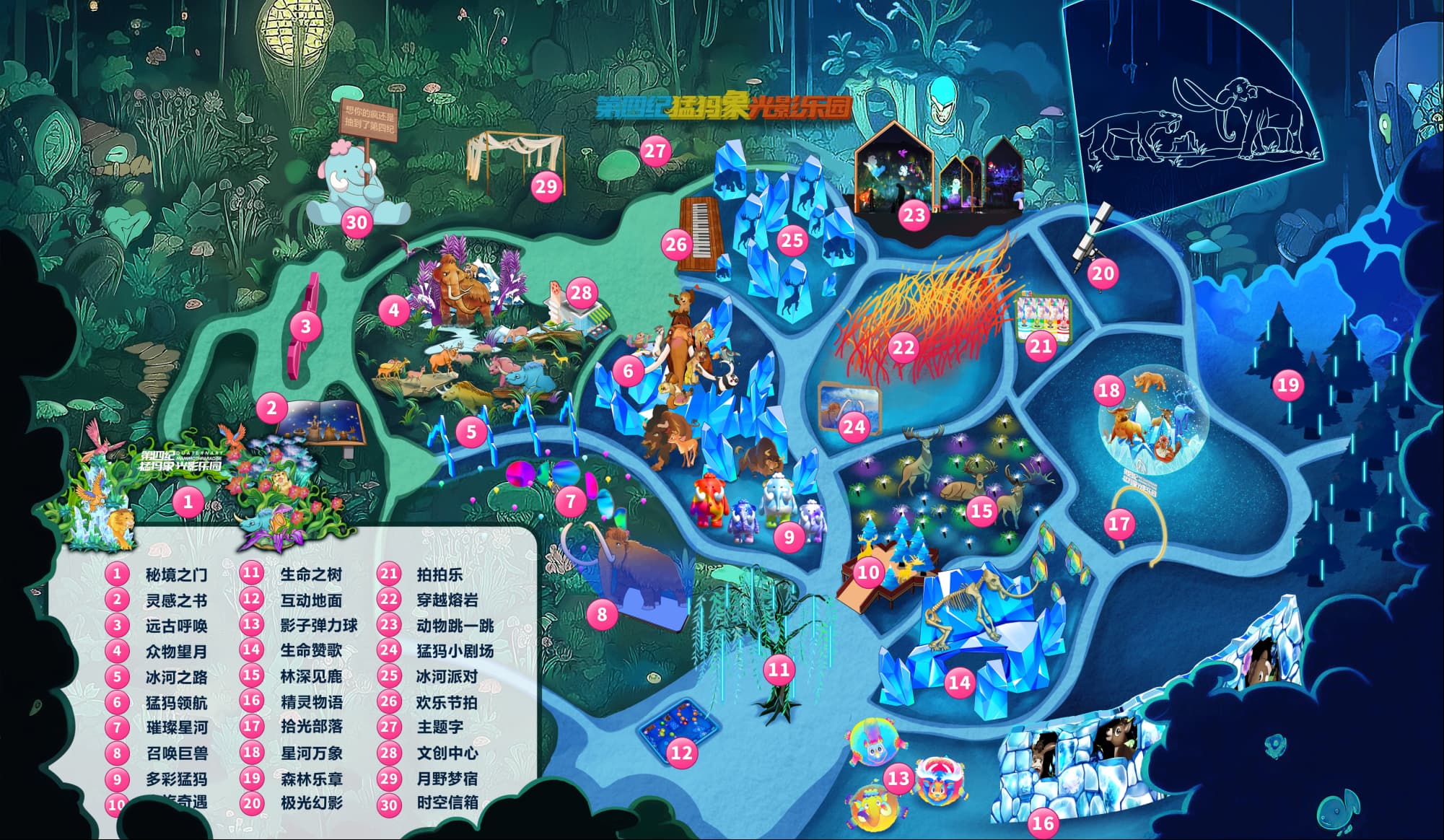 「第四紀(jì)猛犸象光影樂園」是思特科技傾力打造的全國首個冰河時代主題夜游,首展落地大慶市博物館后廣場, 總占地面積4.8萬平方米,總觀覽路線1.2公里,從Ip主題構(gòu)思、場地規(guī)劃設(shè)計、展項內(nèi)容開發(fā)到投資建設(shè)運(yùn)營,歷時兩個多月,展出時長共4個月。未來, 「第四紀(jì)猛犸象光影樂園」計劃在全國進(jìn)行巡展。