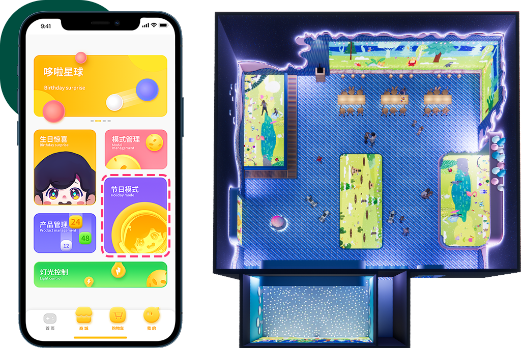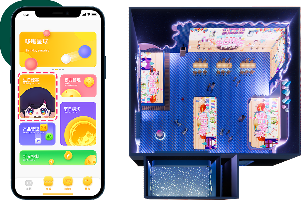 哆啦星球,現(xiàn)擁有三大模式管理、六大主題切換、整館燈光設(shè)備管控等功能,并統(tǒng)一通過智能APP進(jìn)行集中管理控制。