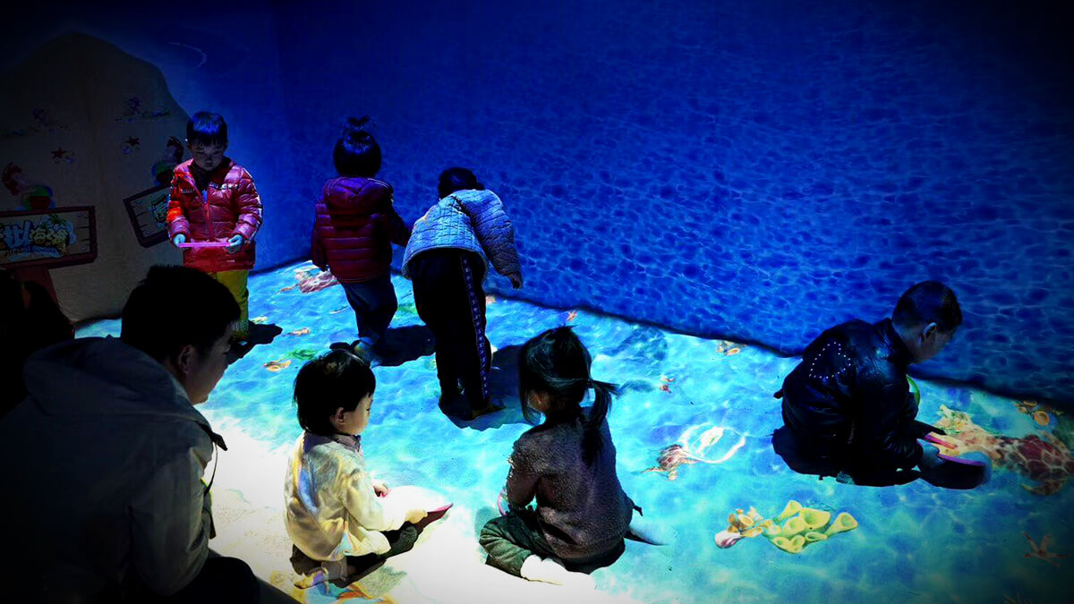 思特科技聯(lián)手濟(jì)南環(huán)宇城打造大型光影互動游樂園,其中主要展品有虛擬海灘、動感地面、繁花瀑布、魔法海洋、重返汪星球、鯨魚寶藏、花海。