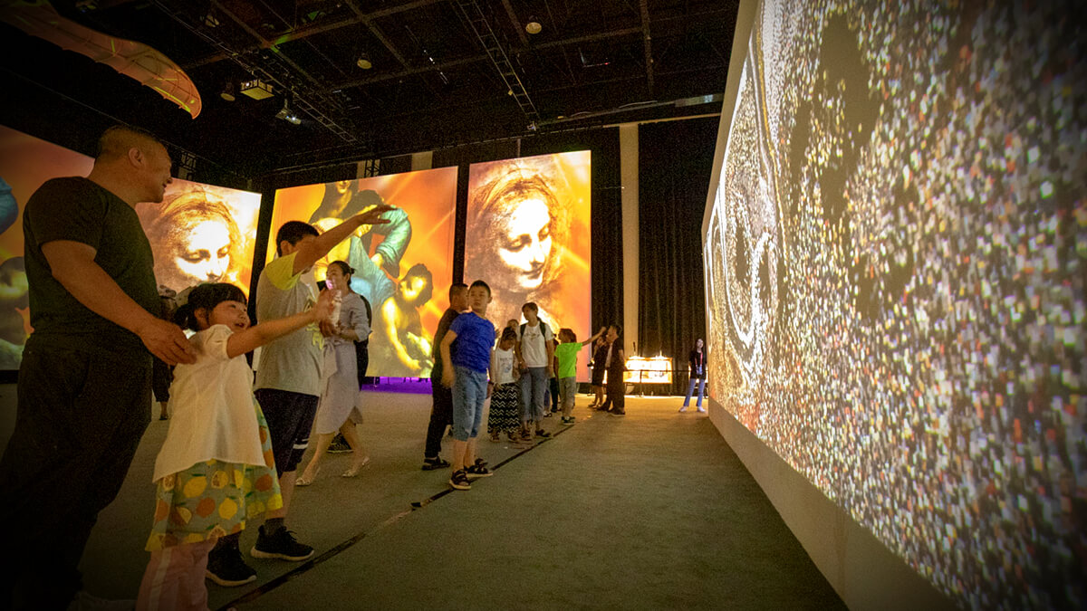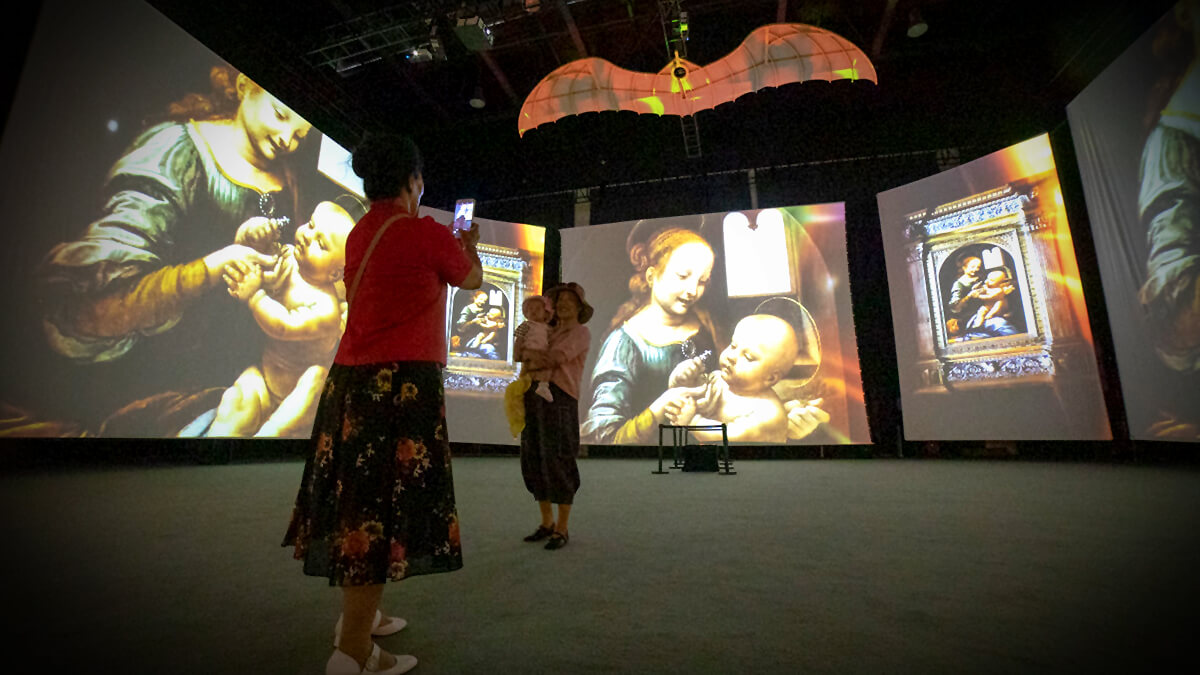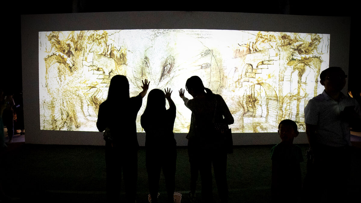 展覽融合了光影互動(dòng)、實(shí)物、映像、音樂等于一體采用全球領(lǐng)先的投影技術(shù),多重屏幕互動(dòng)播映,包含高清圖片和映像,全方位的光感和音效,讓觀眾置身其中,觀覽達(dá)芬奇的曠世之作和發(fā)明創(chuàng)造享受藝術(shù)帶來的震撼之美。