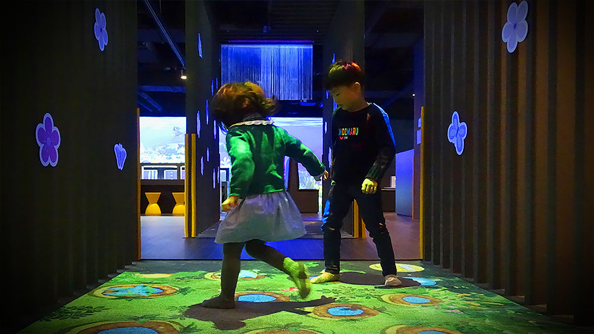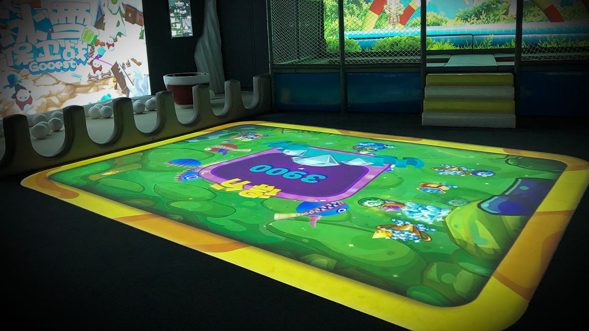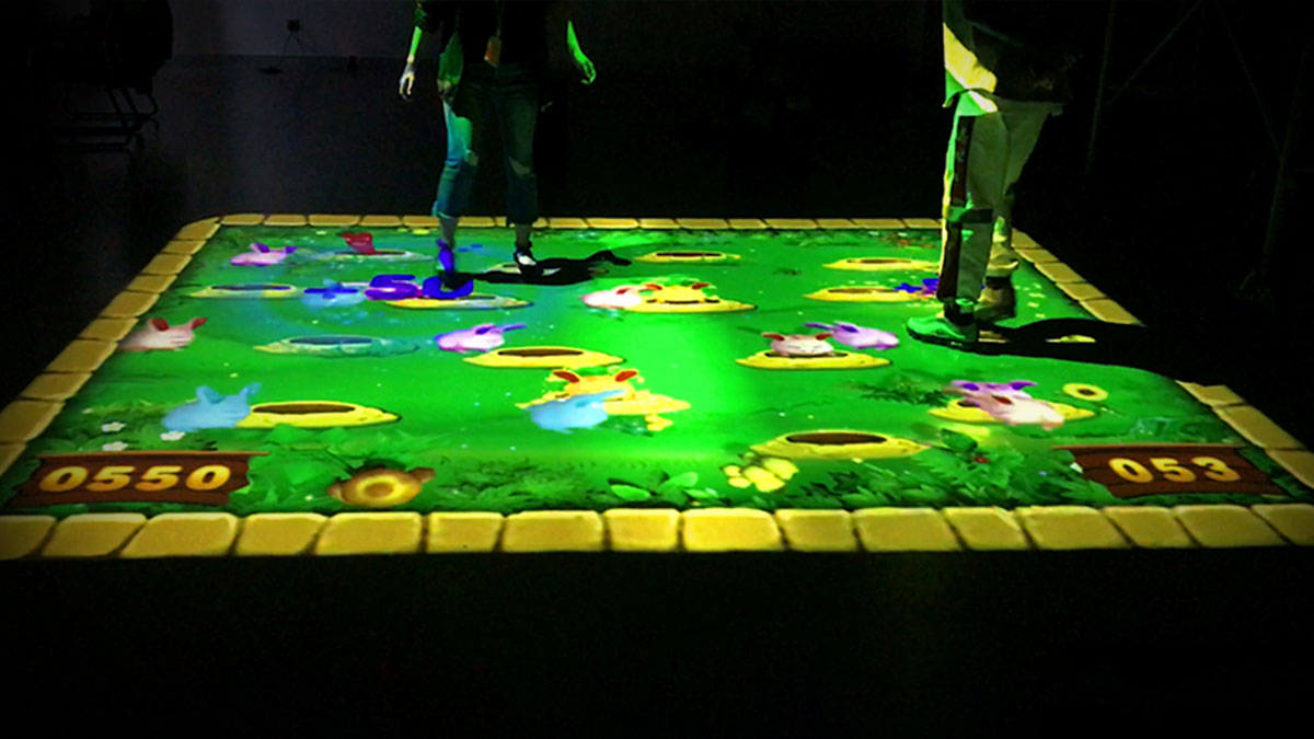 通過踩踏地面上的投影區(qū)域,觸發(fā)各種不同互動效果。