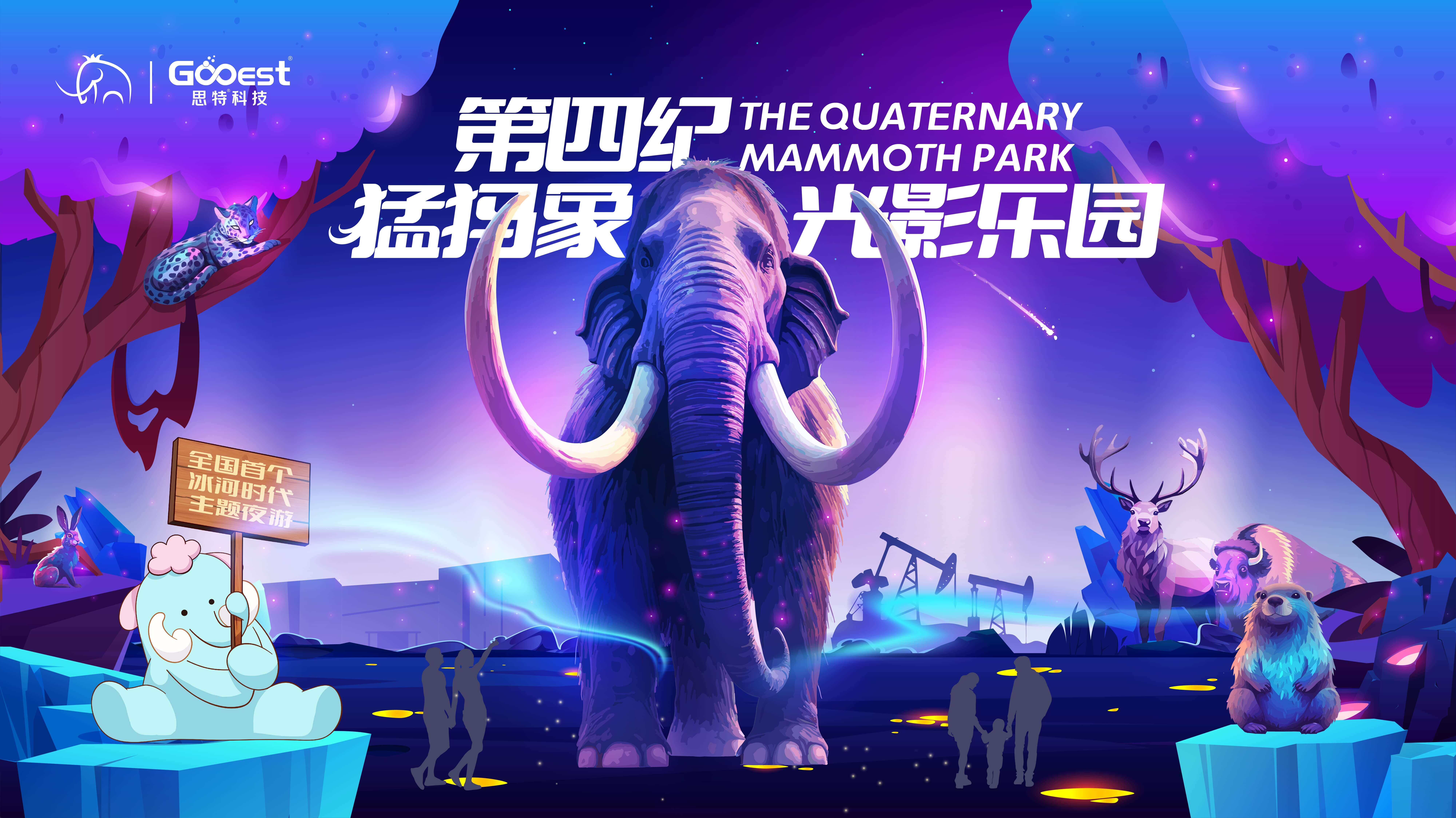 「第四紀猛犸象光影樂園」是思特科技傾力打造的全國首個冰河時代主題夜游,首展落地大慶市博物館后廣場, 總占地面積4.8萬平方米,總觀覽路線1.2公里,從Ip主題構(gòu)思、場地規(guī)劃設計、展項內(nèi)容開發(fā)到投資建設運營,歷時兩個多月,展出時長共4個月。未來, 「第四紀猛犸象光影樂園」計劃在全國進行巡展。