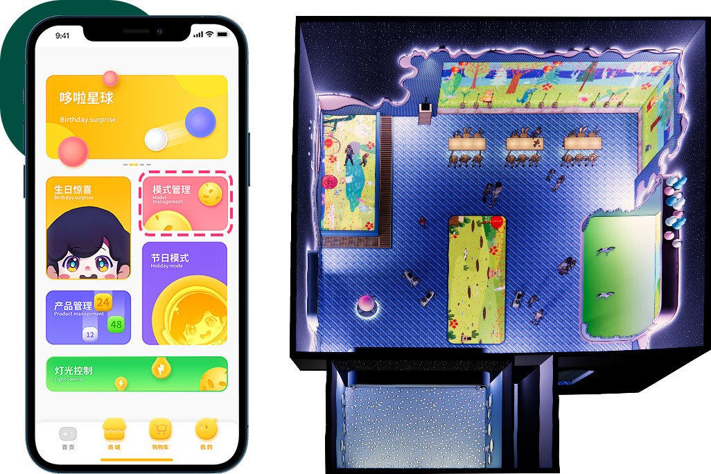 哆啦星球,現(xiàn)擁有三大模式管理、六大主題切換、整館燈光設(shè)備管控等功能,并統(tǒng)一通過智能APP進(jìn)行集中管理控制。