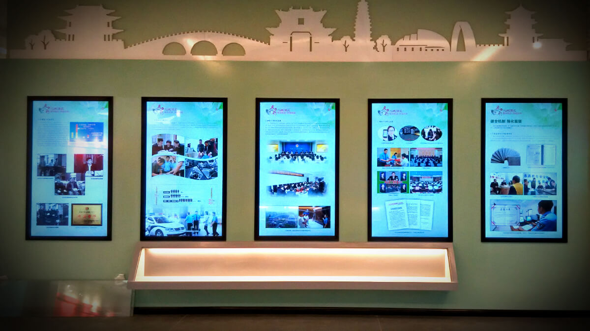 根據(jù)檢察院特點(diǎn)和政府職能特性思特科技會(huì)提煉出一些或者一個(gè)符號(hào)并結(jié)合色彩的運(yùn)用貫穿整個(gè)檢察院展廳,突出檢察系統(tǒng)形象,塑造和傳播形象的統(tǒng)一。
