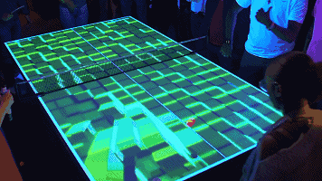在英國倫敦,進行了一場乒乓球的數(shù)字化演變。他們用乒乓球桌和互動投影技術(shù)創(chuàng)造全新的玩法,將乒乓球變?yōu)橐粓龀两缴缃挥螒蝮w驗 。