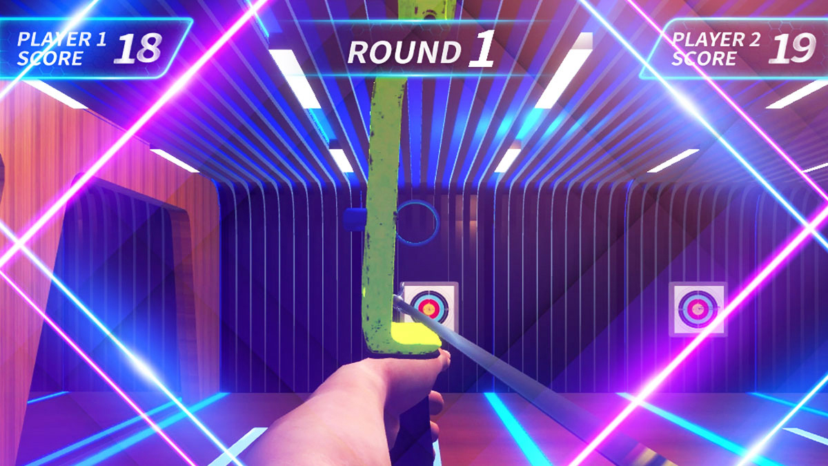 根據(jù)提示開始比賽,使用真實弓和道具箭進行射擊,
